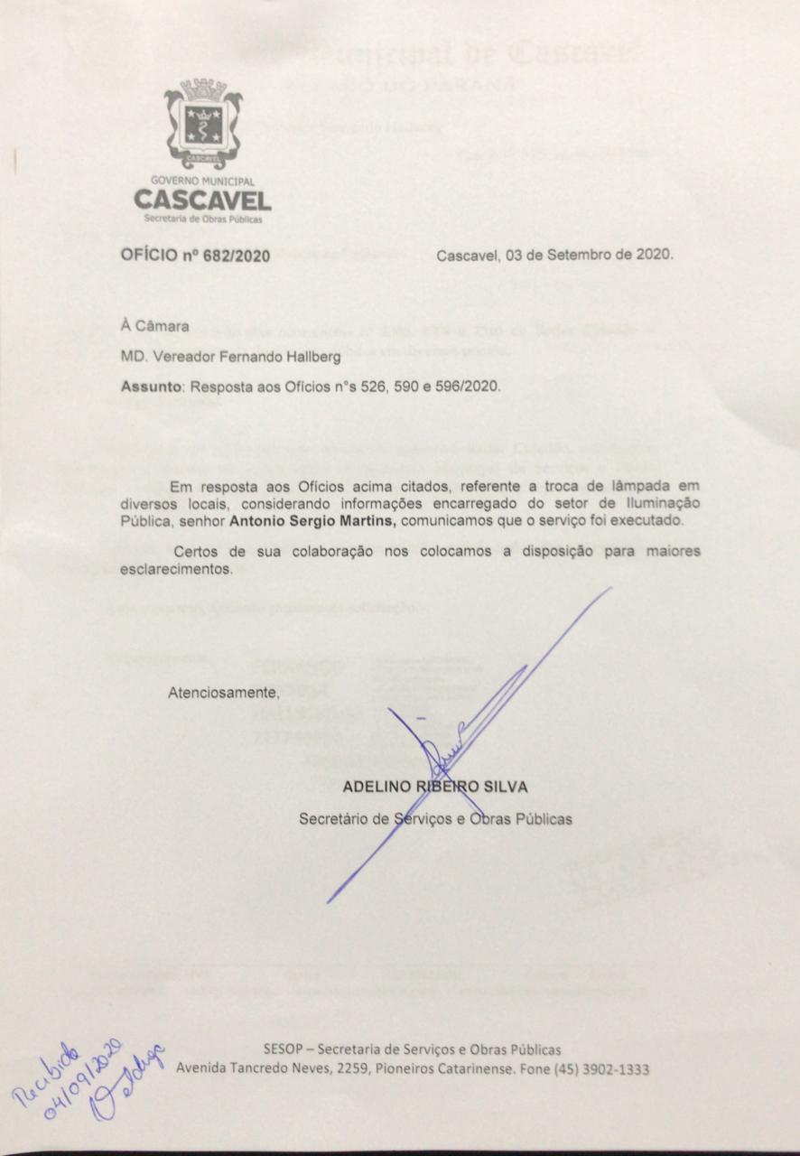 Anexos :Ocorrência encaminhada para a Secretaria Municipal de Obras Públicas através do gabinete do vereador Fernando Hallberg.